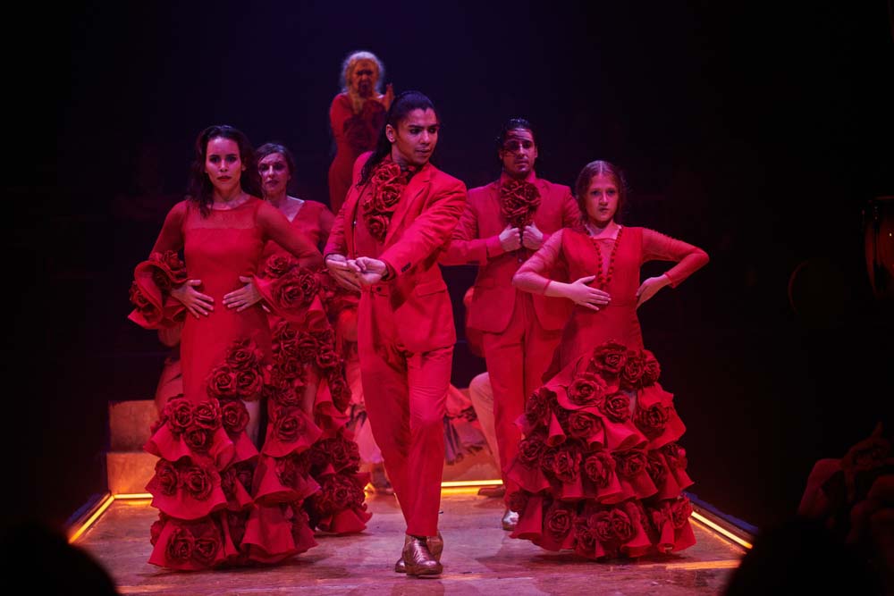Un espectáculo liderado al baile por el inmenso arte de la gran Carmela Greco, que en su papel de matriarca transmite toda la pasión y tradición de este arte milenario, acompañada por artistas como Saul Quirós y Montse Cortés al cante y Antonio Sánchez a la guitarra. En la percusión a cargo de José María Montaña.