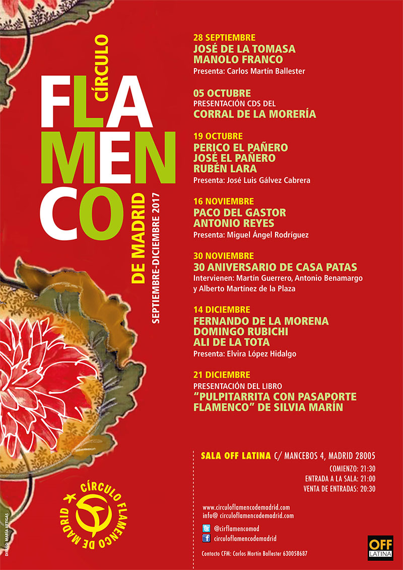 El Círculo Flamenco de Madrid, recientemente premiado en Jerez con “Premio Juan de la Plata a la Difusión del Arte Flamenco” y con la noticia de una nueva nominación a los Latin Grammy por el CD “Directo en el Circulo Flamenco de Madrid” de La Macanita y Manuel Valencia, inicia una nueva temporada con cambio de sede. A partir de esta temporada los conciertos y actividades se celebrarán el “OFF Latina” a las 21.30h.