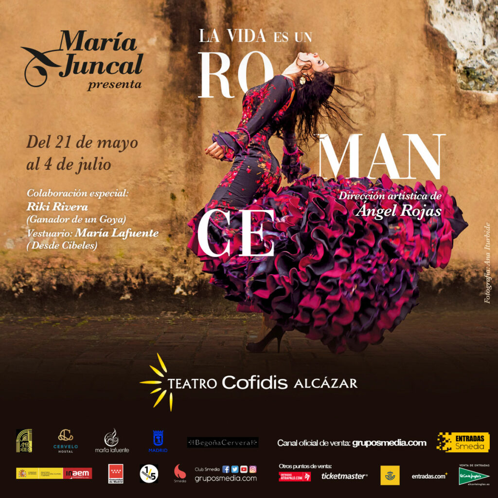 MARÍA JUNCAL, estrenará el próximo 21 de mayo en el Teatro Cofidis Alcázar de Madrid su último espectáculo La Vida es un Romance que estará en cartel todos los viernes, sábados y domingos, hasta el 4 de julio.