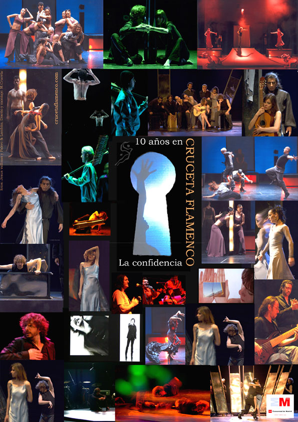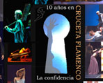 El espectáculo La Confidencia cuenta con María José Sanz y Mariano Cruceta como principales intérpretes dancísticos. Ellos son los más nutridos y veteranos dentro de la trayectoria de la compañía, que debido justamente a este momento concreto del calendario demandan compartir diferentes composiciones y piezas cortas para contarnos sus confidencias. Gustavo Hoyos “Kaos”, Roberto Manzano “Roborob” y Ahmed Karetti (El Peso del Alma) completan el elenco. El lenguaje coreográfico de La Confidencia utiliza todas las formas estéticas y percutivas que han marcado una manera de tratar el flamenco en estos 10 años dentro de Cruceta Flamenco, en su puesta en escena y en su fórmula de comunicación. Lecturas muy elaboradas combinando pasajes de diferentes obras anteriores, recicladas, versionadas y vistas desde un ángulo diferente, con composiciones nuevas. Contrastes y expresiones abstractas, en una plataforma de composición innovadora. La compositora-guitarrista Caroline Planté,con 6 años de experiencia en la compañía, se encargará de la dirección musical y contará con las colaboraciones de Juan José Pestana (bajo), Goiko Martínez (percusiones), Eduardo Pineda (piano) y Manuel Gago y Rafael Jiménez Falo (cante). En este proceso, comprometidos porque seguimos apasionados, buscaremos lo privado de un artista cuando vive su proceso creativo, acompañado de sus más íntimos colaboradores. Un formato intimista para compartir sus penas y sus alegrías, buscando un punto en común con cualquier experiencia creativa, que le permita al espectador convertirse en intérprete. Sobre Cruceta Flamenco Sus siguientes trabajos son Hechiceros, Yenyeré, En Rojo Vivo, En Rojo, Otelo e Invernadero-8 reflexiones, montajes que consagran a la compañía como joven y talentoso grupo capaz de aunar con éxito el flamenco y otras tendencias dancísticas y musicales (desde música cubana hasta música electrónica). Cruceta Flamenco, que lidera Mariano Cruceta, ha viajado fuera y dentro de nuestras fronteras obteniendo grandes éxitos y presentando espectáculos sorprendentes por su originalidad y vanguardista concepción del flamenco más joven, buscando en todos ellos una elegancia interna a través del proceso coreográfico, así como un lenguaje propio; pero sobre todo tratando de crear actitudes y alentar nuevas ideas e ilusiones en los amantes de la danza. ESTRENO EN MADRID! 4 y 5 de MARZO DE 2011 A LAS 20:30 CARTOGRAFÍAS DE LA DANZA TEATRO DE MADRID PRECIO DE LA ENTRADAS: ENTRE 10 y 16 €