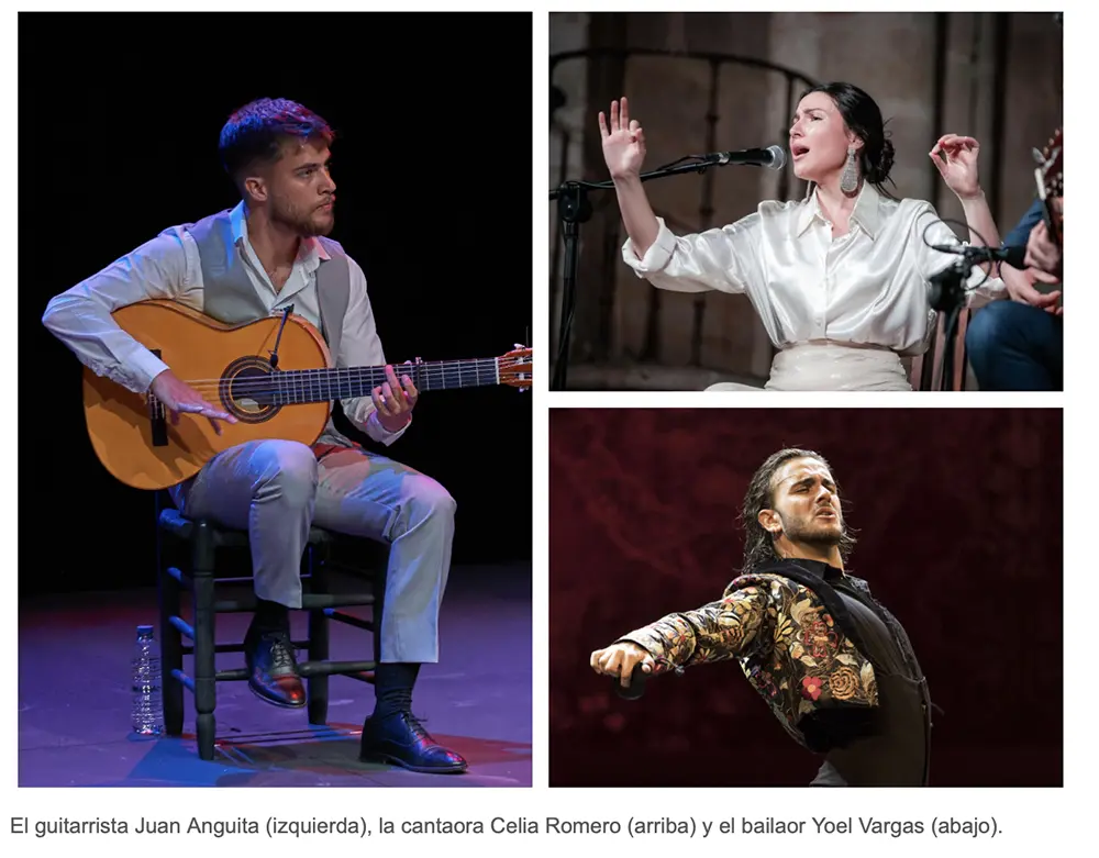 El guitarrista sevillano Juan Anguita, acompañado por Miguel Fernández y Emilio Castañeda al compás, abrirá la última velada. Después actuará la cantaora extremeña Celia Romero, ganadora de la Lámpara Minera en La Unión, junto al guitarrista Niño Seve y el compás de Félix Romero y Luis Vadillo. El cierre correrá a cargo del bailaor tarraconense Yoel Vargas, Premio Desplante en La Unión 2023, acompañado por las cantaoras Aroa Fernández y Loreto de Diego, el guitarrista Javier Conde y el percusionista Juan M. de las Heras.