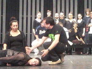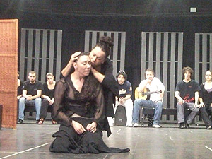 La obra se estrenará en Napoles el próximo 12 de junio y a nivel nacional en el Festival de Mérida el 1 de julio en el Teatro Romano. Los ensayos no han hecho más que empezar en los estudios del director teatral tiene en el barrio madrileño de Carabanchel. Para su presentación a la prensa nos mostraron unos extractos de la obra aún en un nivel incipiente, con la dirección de Javier Latorre y bajo la atenta mirada del director Miguel Narros y el maestro Enrique Morente. DeFlamenco te muestra un video del ensayo, aunque con un sonido deficiente, muestra un extracto de la coreografía de grupo con Amador Rojas y Javier Latorre (en lugar de Alejandro Granados) y el resto del cuerpo de baile. Enrique Morente cantará en directo y estará acompañado por la bailaora/cantaora Carmelilla Montoya, que actuará, bailará y cantará junto a Lola Greco, protagonista de Fedra. La obra es una coproducción de Faraute, Macandé, el Festival de Napoles y el Festival de Mérida. |