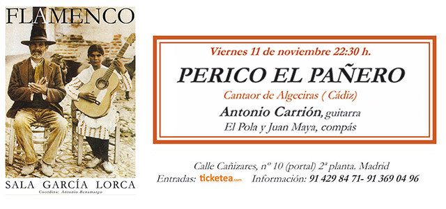 PERICO EL “PAÑERO” es un cantaor gitano nacido en Algeciras en el seno de una familia ligada al cante. Con estos antecedentes familiares, y con la influencia de aquellos gitanos viejos del Campo de Gibraltar, es normal que su cante fluya por los cauces que emanan de los manantiales más puros.