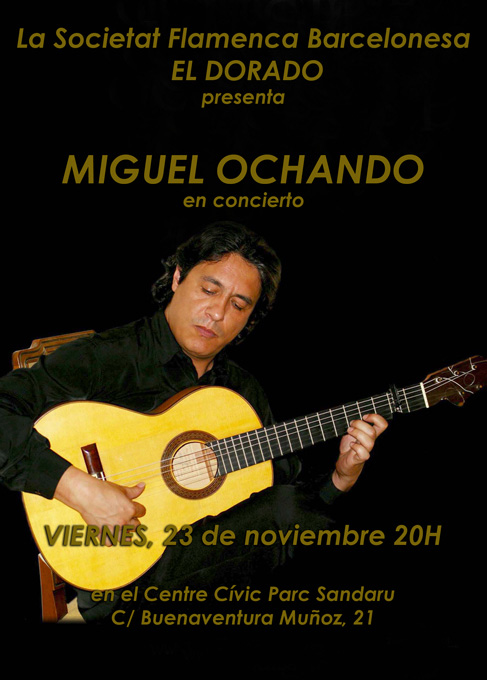 El guitarrista granadino Miguel Ochando reivindicará a los clásicos del toque con un recital en El Dorado, Sociedad Flamenca Barcelonesa.