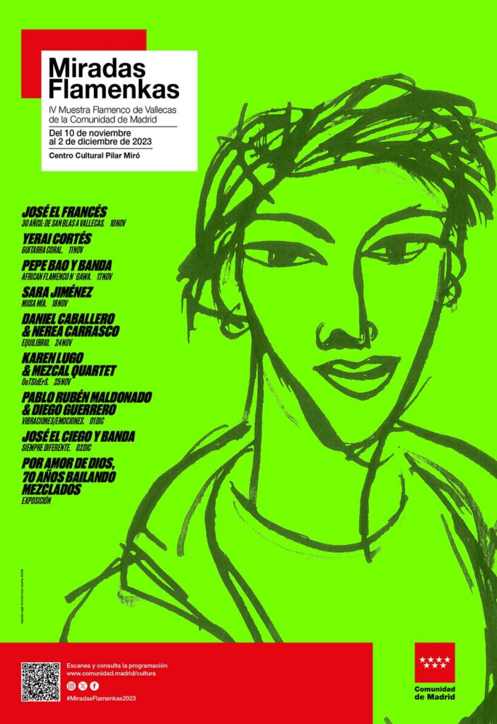 Miradas Flamenkas, el festival de la Comunidad de Madrid que propone un encuentro plural y ecléctico del flamenco con otras músicas, celebrará su cuarta edición del 10 de noviembre al 2 de diciembre y lo hará con ocho espectáculos en el Centro Cultural Pilar Miró de Vallecas y una mirada especial a la Escuela Amor de Dios, el mítico centro de formación de flamenco, que cumple 70 años y al que el festival le dedicará una exposición.