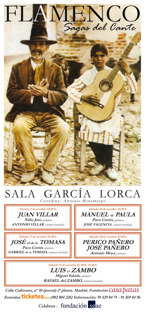Con este ciclo se abre una nueva temporada otoñal en la Sala García Lorca que la Fundación Casa Patas viene programando desde hace dos años Antonio Benamargo. En esta edición cuentan con el apoyo de la Fundación SGAE que ha confiado en el carácter único -por su poso y su valía- de esta programación, en la que se han celebrado anualmente hasta cuarenta recitales diferentes encabezados por artistas de primera línea actuando sin amplificación de sonido.