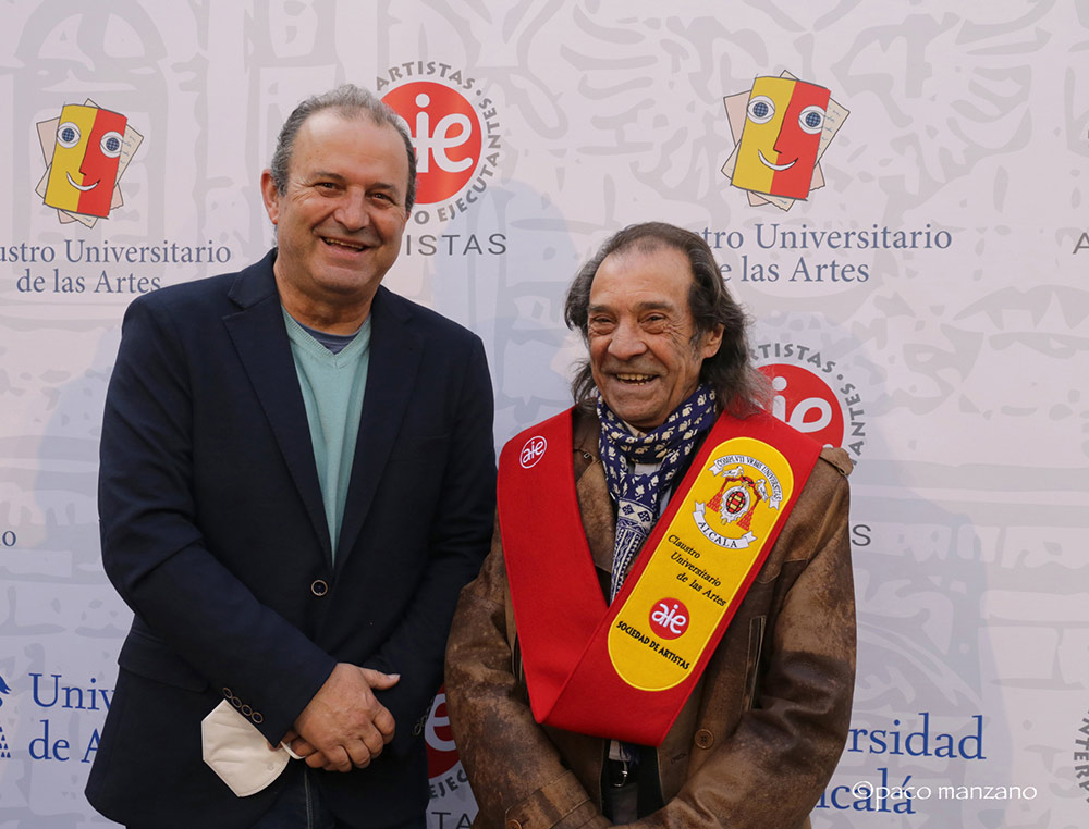En la ceremonia, José Vicente Saz Pérez, Rector de la Universidad de Alcalá, y Luis Cobos, Presidente de la Sociedad de Artistas AIE, imponen y entregan las becas y títulos a los nuevos Miembros de Honor del Claustro Universitario de las Artes.