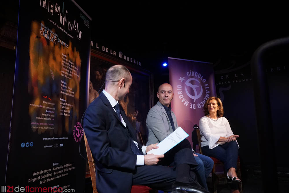 Ayer se presentó el I Festival Círculo Flamenco de Madrid (CFM), en el Corral de la Moreria, por parte del director del CFM, Carlos Martín Ballester, Elvira López Hidalgo -socia que ejercerá de presentadora del Festival- y de Juan Manuel del Rey director del tablao.