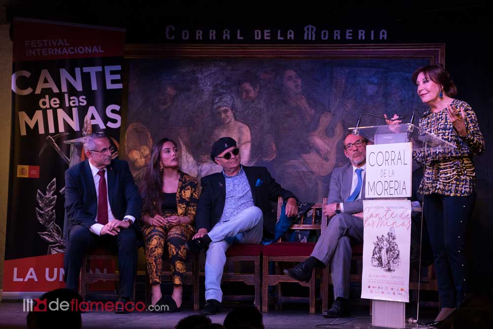 Pedro López Milán ha estado acompañado durante la presentación de la directora artística y propietaria del Corral de Moreria, Blanca del Rey y el gerente, Juan Manuel del Rey, el delegado del Gobierno en la Región de Murcia, Francisco Javier Jiménez, y de parte del elenco de artistas que actuarán en las galas flamencas, Alba Heredia y ‘El Pele’.