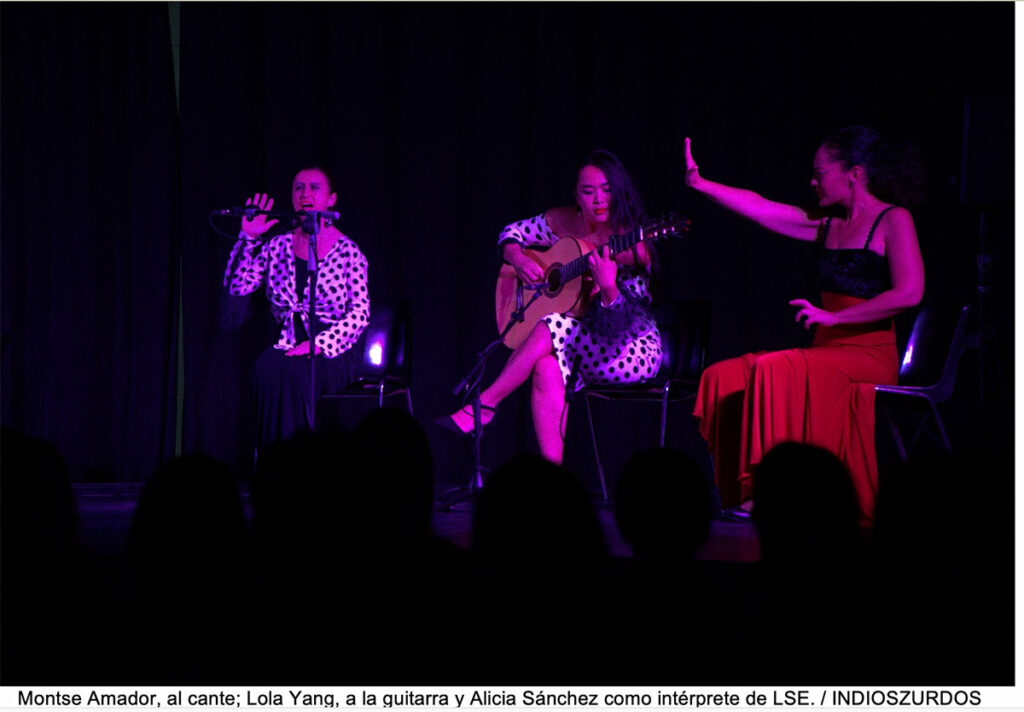 Para este espectáculo, el elenco de la Compañía de José Galán estuvo integrado por la potente voz de la cantaora no vidente, Montse Amador, acompañada en todo momento por Lola Yang a la guitarra y Alicia Sánchez como interprete en LSE, quienes enamoraron a los presentes al interpretar las “Alegrías de Cádiz”. Aunque el momento más emotivo, sin duda, se vivió con el alegato de las bailaoras Lola García-Baquero y Carmen Caro. En palabras de la bailaora Lola “la ceguera le enseño a ver la vida de otra manera, distinta” dando pie con ello al baile que interpretaron con Carmen al compás de “La llorona”, en una versión con toques flamencos, para deleite de los presentes.