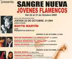 «Sangre Nueva, Jóvenes Flamencos» es un ciclo que dirigen y producen Paco Ortega y Eugenio Gurumeta con el objetivo de ofrecer al público un recorrido por el arte de estrellas emergentes, tanto en el cante como el baile. Dos grandes figuras del Flamenco darán la alternativa a los nuevos talentos, Mayte Martin en el pistoletazo de salida, el jueves 22 y Pansequito como artista invitado en gala de cierre del sábado 31, ambos presentando sus nuevos discos. |