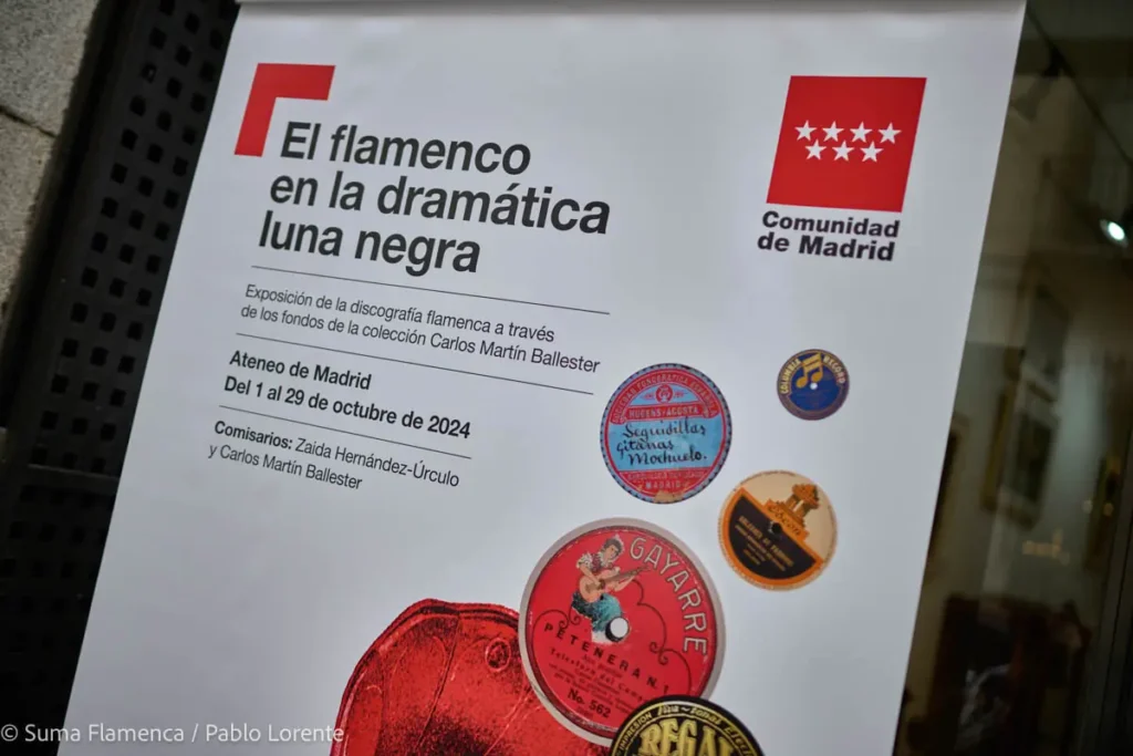 El festival Suma Flamenca de la Comunidad de Madrid ha abierto hoy las puertas en el Ateneo de Madrid de la exposición El flamenco en la dramática luna negra. La discografía flamenca a través de los fondos de la Colección Carlos Martín Ballester, un recorrido por el patrimonio sonoro del flamenco a través de piezas históricas de grabación y difusión de la música en sus primeras etapas, así como documentos, fotografías, discos y pinturas que contextualizan las piezas sonoras. El público podrá disfrutar de diez audios seleccionados y digitalizados expresamente para esta exposición, que podrá visitarse hasta el 29 de octubre en la Sala Anselma.