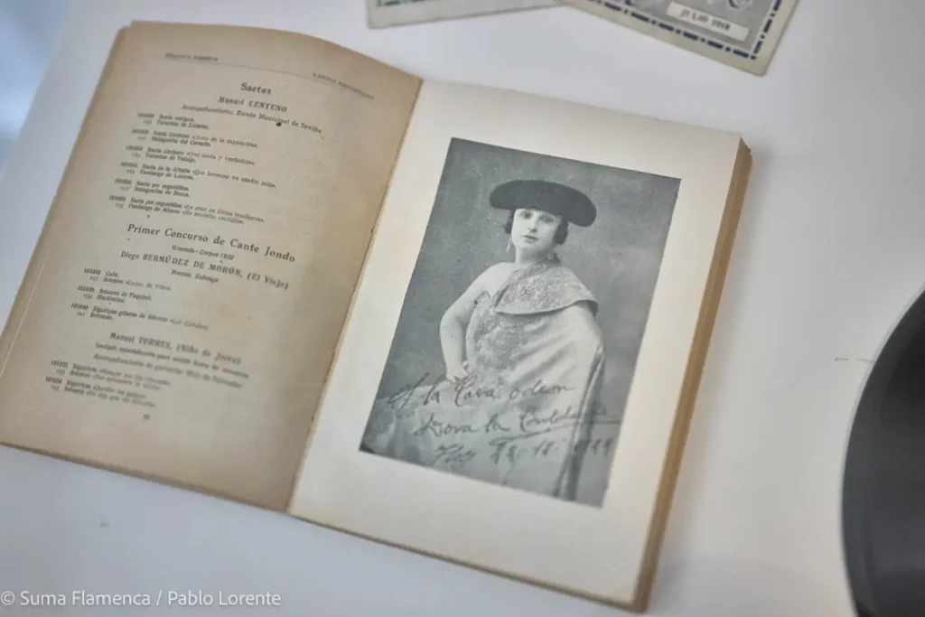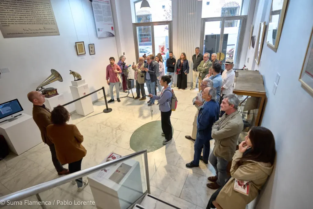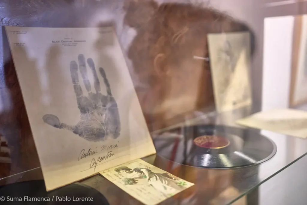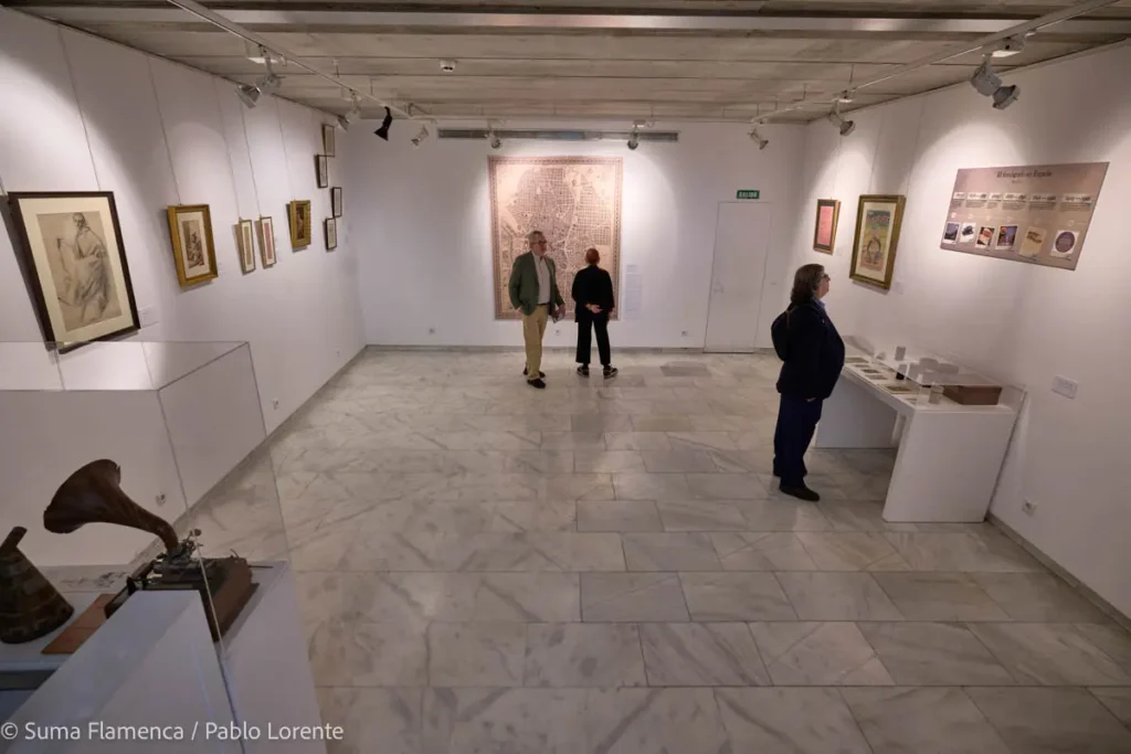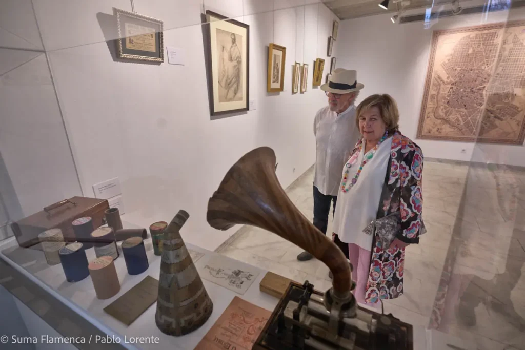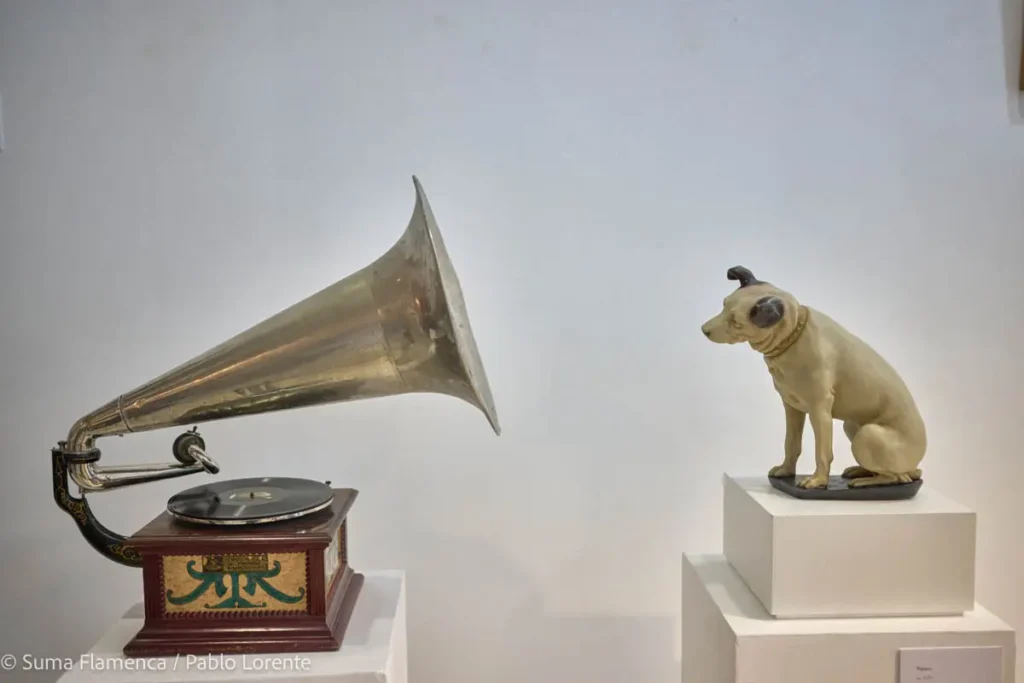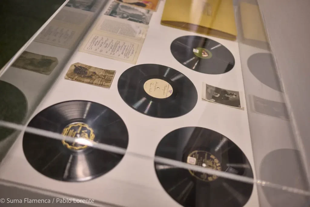 Se muestran igualmente gramófonos, discos, carteles, fotografías, o catálogos, y algunos puntos dedicados a Antonia Mercé ‘LaArgentina’, Vicente Escudero, Antonio Mairena, etc., que pertenecen a la etapa posterior a 1926, cuando la calidad de sonido evoluciona y el disco se convierte progresivamente en un elemento habitual de los hogares en España, dejando de ser un producto elitista, gracias a la reducción de precios y al influjo de la radio, entre otros factores.