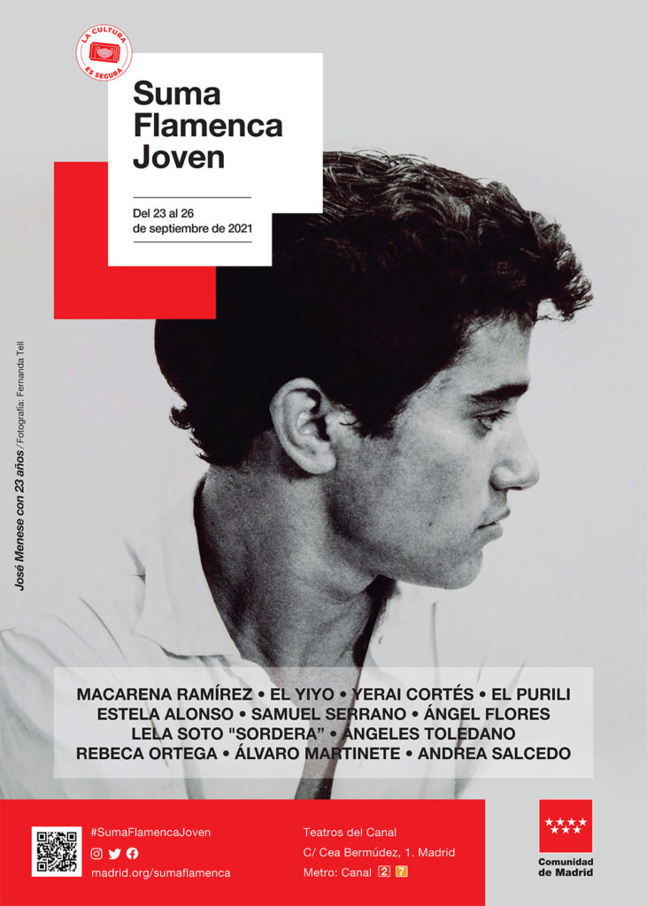 La Consejería de Cultura, Turismo y Deporte de la Comunidad de Madrid ha presentado hoy, como antesala del Festival Suma Flamenca 2021, la primera edición del ciclo Suma Flamenca Joven, que se celebrará entre el 23 y el 26 del próximo mes de septiembre en Teatros del Canal. Una cita que nace con el propósito de consolidar un espacio propio en la agenda cultural de Madrid para apoyar al talento joven flamenco.
