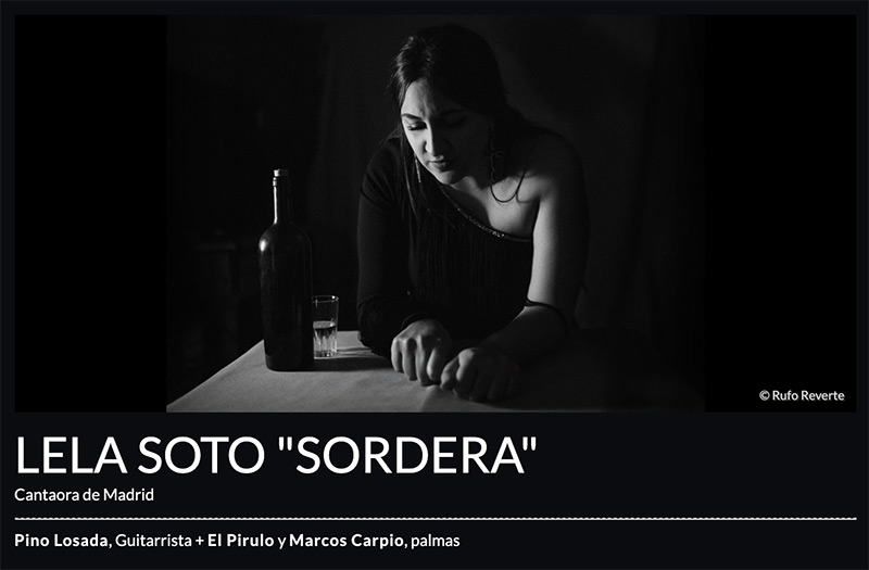 LELA SOTO “SORDERA” Cantaora de Madrid; Pino Losada, Guitarrista + El Pirulo y Marcos Carpio, palmas