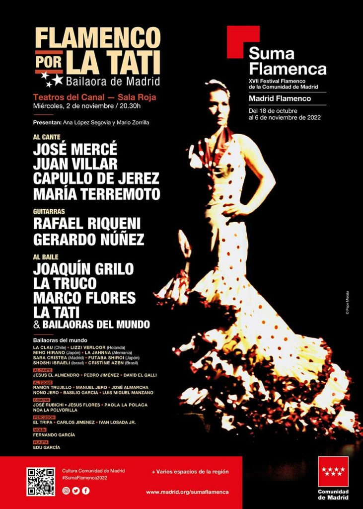 A la llamada a este acto de reconocimiento acuden sus compañeros, como ella, máximas figuras de cartel, donde se encuentra lo más granado del Jerez que Francisca Sadornil Ruiz, La Tati, adora. El homenaje se celebrará en la Sala Roja de Teatros del Canal, que concentra a lo largo de esta semana otros cuatro espectáculos de baile.