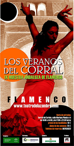 Once again this &ear, the Teatro de la Zambra brings the now traditional “Veranos del Corral de Granada” (Summertime at the Corral), a complete . Program of guitar, dance and cante with the most prominent young artists of flamenco. – July. 17 Tuesday – July. 18 Wednesday – July. 19 Thursday – July. 24 Tuesday . Program of dance and song. – July. 25 Wednesday -July. 26 Thursday – July. 31 Tuesday – August. 1 Wednesday – August. 2 Thursday – August. 7 Tuesday – August. 8 Wednesday – August. 9 Thursday – August. 14 Tuesday – August. 15 Wednesday. Tickets : Pass : 75 Euros. : 667628522