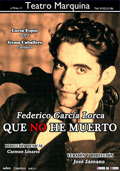 “QUE NO HE MUERTO” es un espectáculo dramático-musical que transmite e introduce al espectador en la personalidad, en el sentimiento musical y en la obra poética de Federico García Lorca, entrelazando a lo largo de todo el espectáculo tres elementos, que crean la continuidad del mismo y la progresión dramática que culmina con la muerte del poeta.