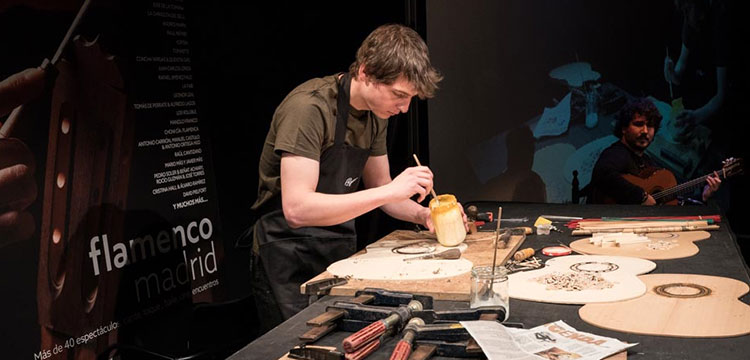 Para finalizar el acto se ha realizado una pequeña exhibición de artesanía de construcción de guitarras flamencas a través de la casa de guitarras de José Ramirez, acompañado a la guitarra por Paco Vidal.