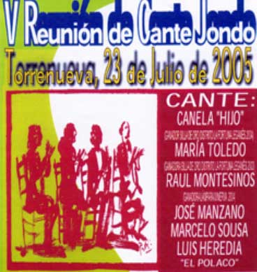 El próximo dia 23 de Julio se celebra en Torrenueva (Granada) la V REUNION DE CANTE JONDO. Estas citas flamencas, se vienen celebrando en lugares de larga tradición cantaora, como La Puebla de Cazalla o Mairena del Alcor, distinguiéndose del resto de los festivales que se celebran por la geografía Andaluza por su inspiración señaladamente jonda.
