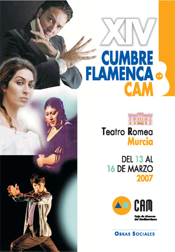 Del 13 al 16 de marzo se celebrará la 14 edición de la Cumbre Flamenca de la CAM en la ciudad de Murcia. Estrella Morente encabeza el cartel y abre la cumbre el día 13 de marzo seguido de las figuras del baile Joaquín Grilo presenta 'Grilo' el 14 de marzo, Antonio El Pipa presenta su éxitoso 'De Tablao' el jueves día 15 y cierra la cumbre el viernes 16 la bailaora Manuela Carrasco y su compañía con el espectáculo 'Un sorbito de lo sublime'.