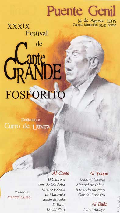 La XXXIX Edición del Festival de Cante Grande, a celebrar en Puente Genil, el día 14 agosto 2005, esté dedicado a Francisco Díaz García, «Curro de Utrera», con el siguiente cartel: