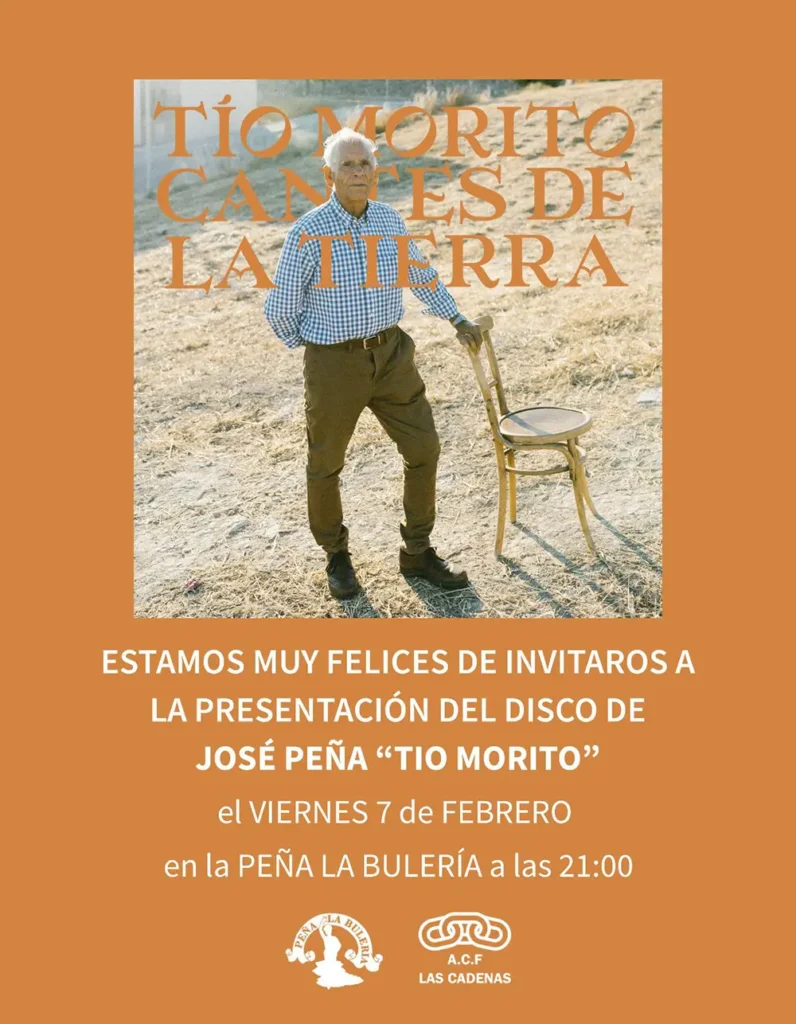 Como parte de su agenda de actividades, la ACF Las Cadenas participará el 7 de febrero en la presentación del disco Cantes de la Tierra de José Peña «Tío Morito», en la Peña La Bulería a las 21:00 horas. Este trabajo, grabado en junio de 2024, cuenta con el acompañamiento del guitarrista Domingo Rubichi y el compás de Ali de la Tota, José Rubichi y Carlos Grilo.