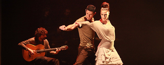 At the Villamarta theater, we had the opportunity to see an interesting collaboration between two brothers and their sister: dancers Adela and Rafael Campallo, with the guitar and musical direction of Juan Campallo. I don't know if the title «Sangre» ('blood') is a wink to the most radical gypsyphiles who only understand flamenco as strands of DNA, but the thing is, many of those who do not belong to that ethnic group have their own flamenco ambience, live flamenco as a family tradition and express themselves through their shared art. In fact, there are other brother and sister dancers nowadays, most notably Israel and Pastora Galván, and Juan and Pilar Ogalla, but they have done relatively few things together on stage.