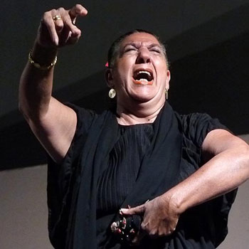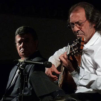 A series of parallel activities such as guitar and cante recitals, conferences, documentaries and a photographic exhibition about Mario Maya were offered over the course of the week to flesh out the forty-fourth edition of the festival, although, as the master of ceremonies commented, in La Puebla no one refers to this event as a “festival”…they just call it the “cante jondo”. The guitar solo that traditionally opens each part, was the responsibility of the much admired maestro from Granada, Pepe Habichuela, who played a classic soleá with contemporary touches. Singer Jesús Méndez, with the guitar of Manuel Valencia and the palmas of Miguel Salado and Macano, filled the slot reserved for young hopefuls. He started with the form that would also be the traditional closing of the night – tonás (with pregón) – showing the clear influence of Antonio Mairena so typical of his San Miguel neighborhood, and with the unmistakable aggressive delivery of Jerez. Noteworthy was the siguiriya with a powerful ending of cababes. Juana “la del Pipa”, the “voice”. Better-known for her characteristic raspy voice than for her singing, the lady was accompanied by Manuel Valencia. Attractive at fifty-something, dressed in black with a sparkly scarf and large red flower in her hair, she began with a single verse of tientos to prelude some disposable pop tangos, closing with a bit of dance. The soleá had more substance, but in the fandangos, the histrionic approach was a little over the top for this part of the flamenco geography where sobriety is more valued than theatrics. In the bulerías she sang to end, there was no need to overact, because they’re cantes in constant use, wholly authentic and with the aroma of Jerez.