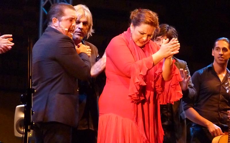 Era un cartel digno, femenino en su mayor parte, sin que esto representara menor impacto. El presentador Pepe Marín nombró de una en una a las componentes del cuadro telonero “Jerez es Flamenca”: Macarena Moneo, Ana de los Reyes, Rosario Soto, Rocío la del Mono y Carmen la Cantarota, de las grandes familias cantaoras de Jerez. Casi fue lo mejor de la noche. La típica escena de compás a nudillos “alreó” de la mesa, sin guitarra, como en los tabancos y gañanías de antes, turnándose por bulerías con cantes y bailes, cinco mujeres desplegaron el empaque jerezano en todo su esplendor. Compás energético, personalidad y mucho sabor. Y pensar que hasta hace no tantos años fue costumbre que las mujeres casadas no cantaran fuera del entorno familiar.