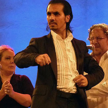 Text and photos: Estela Zatania IMPRESSIVE PROGRAM AND AN AMAZING NIGHT Cante: José Mercé, José Valencia, Eva Ruiz. Dance: Farruquito y su grupo. Eight days of parallel activities, guitar recitals, conferences illustrated with music, the exhibit “Pastora Pavón, la Niña de los Peines” and a top-notch program for the Caracolá Lebrijana…you’d think the recession was suddenly over. No wonder every ticket was scooped up in exchange for the privilege of occupying a plastic chair in the Plaza del Hospitalillo for four and a half hours. But at 15 euros a ticket, not even the packed venue could possibly cover the cost of this bill of artists, so congratulations are in order for the organization and sponsors for their efforts and sacrifice in this cardinal point of the flamenco map. The first person to take the stage was local singer Eva Ruiz, a cante teacher in Seville, and last year the victim of strange sabotage during her performance at this festival when the amplification cut repeatedly. An original arrangement of cabales, malagueña with abandolao ending, tientos tangos and bulerías with a strong Lebrija flavor were accompanied by Francisco Vinuesa and Carlos Ara on guitar, and the palmas of Juan Diego and Manuel Valencia.