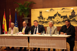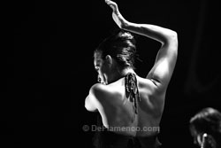 Text: Estela Zatania Monday’s cultural activities at the Festival Internacional del Cante de las Minas got underway at eight in the evening with a roundtable discussion of Antonio Mairena, most notably the singer’s historic performance at this festival in 1974 when he was accompanied by Paco de Lucía. The long night at the theater began with the cante recital of young singer Argentina with the guitars of José Quevedo “Bolita” and Eugenio Iglesias, the percussion of José Carrasco and the palmas of Bobote and Torombo. Along with Arcángel and Guillermo Cano, this makes three Huelva natives who have been featured at the festival in three days. Young and talented, Argentina has many virtues and a few rough spots, but plenty of years ahead of her to achieve the success she clearly hankers for. Her slickly refined singing comes from countless hours of study and sacrifice. In fact, she doesn’t manage to move beyond the characteristic sound of the Seville academy which in recent years has populated the flamenco landscape with young women with a similar voice and delivery, a type of cante very apt for the general public. Tangos, abandolao with all the energy of bulerías, soleá with a feeling of soleá por bulería, granaína, mineras, siguiriyas at the seventh fret, a high position she manages without a hitch, cantiñas, bulerías and fandangos from her hometown, encouraging the audience to sing along with the fandango cané of Alosno. Though seemingly stifled by a satin pantsuit busy with ruffles, and long loose that hair kept making problems, she managed to concentrate almost obsessively on her cante, constructing complex embellishments and modulating her voice with great sensitivity. Rafael Amargo from Granada, is one of those dancers in the peculiar situation of being admired by the general public, but little appreciated by serious flamenco fans. I’m not sure what causes such a contradiction, but it may have to do with the high quality of his dancing and the dubious level of his shows. Prolific he is; eight shows with his own company in twelve years. “Tiempo Muerto” is the sixth work, and according to press releases, it is intended as a tribute to Lola Flores, but you could have fooled me. Perhaps the verses, composed by Rafael Amargo himself, are allusive to the popular performer – a defective amplification made it nearly impossible to decipher the lyrics. Ten musicians and six female dancers participate in “Tiempo Muerto”, a contemporary production that opens with siguiriyas at breakneck speed, and lots of aggressive percussion that gives no respite throughout the hour and a half performance. The entire show is a continuous display of percussive energy, an excess of enthusiasm “made in Sacromonte” that manages to delight the audience packed into the Cathedral of Cante. There are discreetly erotic references. A number with four women in black skirts and black bras who play castanets is an odd combination of modern and classic. The wardrobe in general keeps to basic black and white except for a facing-off between two women dancers dressed in electric red and which could have been cut in half, and the alegrías of Amargo who wears the same color. In addition to voice and guitar (there is no program to identify the members of the company), violin, cello and special guest artist María la Coneja give life to this show that could be described as Mad Max in Granada, but which in the end has a lot to offer. The fiesta finale is tangos, as is only fitting. |