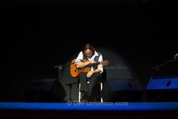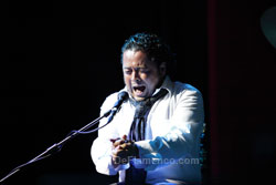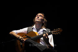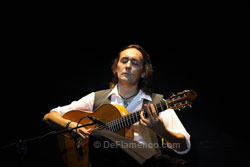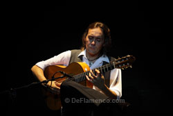 Texto: Estela Zatania El martes día 11 en La Unión, las actividades culturales empezaron en el salón de actos del ayuntamiento con la conferencia “Descubrimientos sobre la época temprana de la historia del flamenco” a cargo del investigador gaditano Guillermo Boto, y la entrega de la Llave de Oro de la Peña Flamenca La Platería de Granada al Festival Internacional del Cante de las Minas. Gran expectación en el pueblo debido a la llegada de la Ministra de Cultura María Ángeles González Sinde, y el recital del Vicente Amigo en la Catedral del Cante. Y un día dijo Dios: “sea la guitarra flamenca con un sonido actualizado”, y se hizo Paco de Lucía. Pero poco después, hubo otros: Manolo, Gerardo o un joven de Guadalcanal, criado en Córdoba, cuyo apellido parece aludir a la elegante serenidad de su persona y de su arte: Amigo. Además de otros importantes premios como el de la Música, o el Grammy Latino, en 1988 fue otorgado el Bordón Minero, máximo premio a la guitarra del festival de La Unión. Dos décadas más tarde, en este año 2009, vuelve al escenario de aquel triunfo, y es objeto del homenaje del mismo festival. Vicente Amigo fue influenciado profundamente por Manolo Sanlúcar con quien estudió largamente, pero también se considera seguidor de Paco de Lucía cuya perspectiva es muy diferente al de Sanlúcar. En cierto modo, se podría decir que Amigo ha sido el que ha logrado combinar los conceptos tan dispares de estos dos gigantes, creando un estilo propio por el camino. Con los ojos cerrados y la cabeza echada hacia atrás, aquel gesto que Paco puso de moda permanente para los guitarristas hace más de tres décadas, Vicente empezó en solitario, sus dedos largos y finos, como arañas caminando por el diapasón, llenando el espacio del venerable mercado que fuera, teatro que es, con sus exquisitamente bellos hilos de melodía, llenos de una delicada espiritualidad. Cuando se presenta el resto del grupo, cantaores Miguel Ortega y Rafael de Utrera, además de percusión, guitarra eléctrica, violín y batería, interpretan un airoso arreglo de fandangos de Huelva. Tangos acancionados, y bulerías etéreas y flotantes hasta que la alzapúa mortífera del guitarrista rompa el sueño y dé el flamenco. Problemas recientes con el hombro no parecen haber mermado las impresionantes facultades del músico. Se queda solo nuevamente para una bella taranta, tan apropiada para el entorno, y una original farruca, palo que está en pleno proceso evolutivo, tanto en el toque de guitarra como en el cante. A continuación, interpreta con el grupo algunos temas más populares que son de su último disco, Paseo de Gracia, un trabajo que el mismo artista califica como diseñado más para el gran público que para el aficionado serio. La tarde de miércoles, Vicente Amigo recibirá de las manos del Alcalde de La Unión, don Francisco Bernabé, el Castillete de Oro del Festival. Más información: |