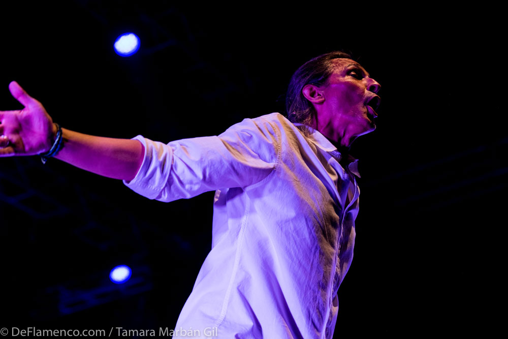 En cualquier caso, algo por lo que se distinguió la noche del jueves estuvo, claramente, en el trabajo audiovisual, que condujo con maestría al público a los lugares pertinentes con piezas muy conseguidas, y a pesar de que habría que limar ese diálogo entre escena real y proyectada (una pena que el hilo vertebrador se quebrara justo cuando mejor sabía su presencia), abrió la veda a otros espacios, reflexiones y necesidades; una puerta, la de la idea de espectáculo completo que se preocupa por indagar en los recursos técnicos actuales, algo que el flamenco denominado tradicional suele saldar con un fondo negro sin muchos más miramientos. No digo que tenga que ser siempre así ni que la Fiesta de la Bulería sea el espacio idóneo para este tipo de propuestas, pero sí es cierto que el público compartía el regocijo de la novedad técnica atravesando lo ortodoxia musical. ¿Por qué no?