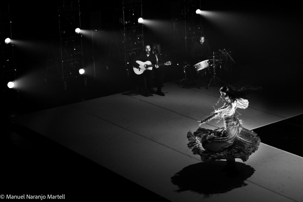 Un relato narrativo, cargado de simbolismos, y de carácter teatral en el que las piezas se hilvanan desde lo musical, con la guitarra siempre sugerente de Juan Campallo, desde lo biográfico y desde el baile, en su caso, desbordante, pasional, frenético y arrebatador.