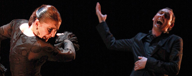 When the two singers, Pepe de Pura and Antonio Núñez “El Pulga” arrive on stage, with the guitars of Juan Requena, Oscar Lagos and Paco Vega, everything comes to life and suddenly it’s bulerías. Next, a barely audible off-stage voice (it wasn’t me, everyone around me was asking “what’s he’s saying?), a naked lightbulb, a seated female dancer and a very dense darkness indicate we have returned to the conceptual world.