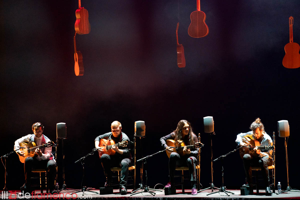 Por eso, en cuanto se abrió el telón y vimos el brillo de los distintos colores de la madera de estas cuatro guitarras, rebosantes de juventud, talento, admiración y firmeza, sentimos un fogonazo de emoción al reconocer la grandeza de la sonanta jonda. Y pudimos, a través de sus cuerdas, no sólo recorrer los múltiples paisajes que nos descubre, sino revisitar aquellos que ya inauguraron otros desde Sabicas a Paco de Lucía, pasando por Manolo Sanlúcar, Ramón Montoya o Serranito, Pepe Habichuela y Tomatito, que se encontraban entre el público.
