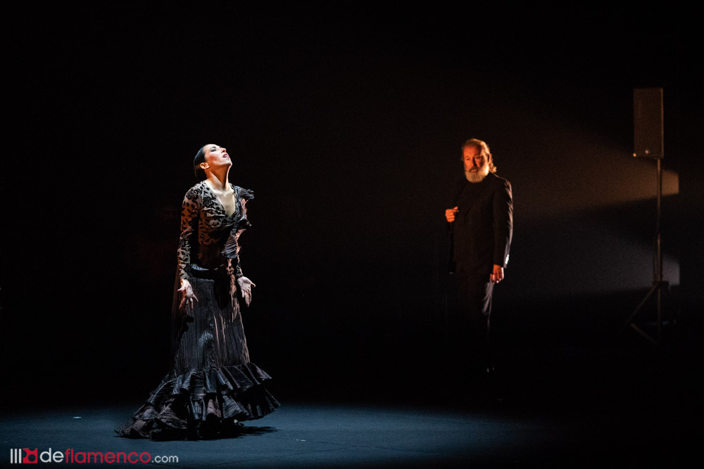 Y llegamos a las aguas tranquilas protagonizadas por Juan José Amador un cantaor que ha sido llamado en los dos últimos siglos para cantar atrás y que la Morales sitúa en el centro del escenario para bailarle desde el espejo de las emociones y los gestos compartidos. Belleza en los ojos y en los oídos.