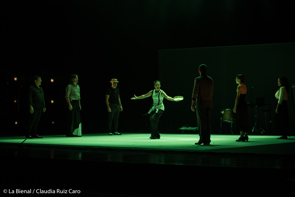 Es verdad que la construcción del espectáculo sobre estos ‘experimentos’ daba, a ratos, la sensación de un largo ensayo en el que además sobraban elementos, recursos (como esas proyecciones que tampoco añadían nada) y piezas (como la que interpreta Julia Acosta en homenaje a la mujer (con recuerdo a las corraleras lebrijanas) que nos resultó casposa e impropia de una propuesta de la catalana). También de parte del elenco que está pero no es necesario.