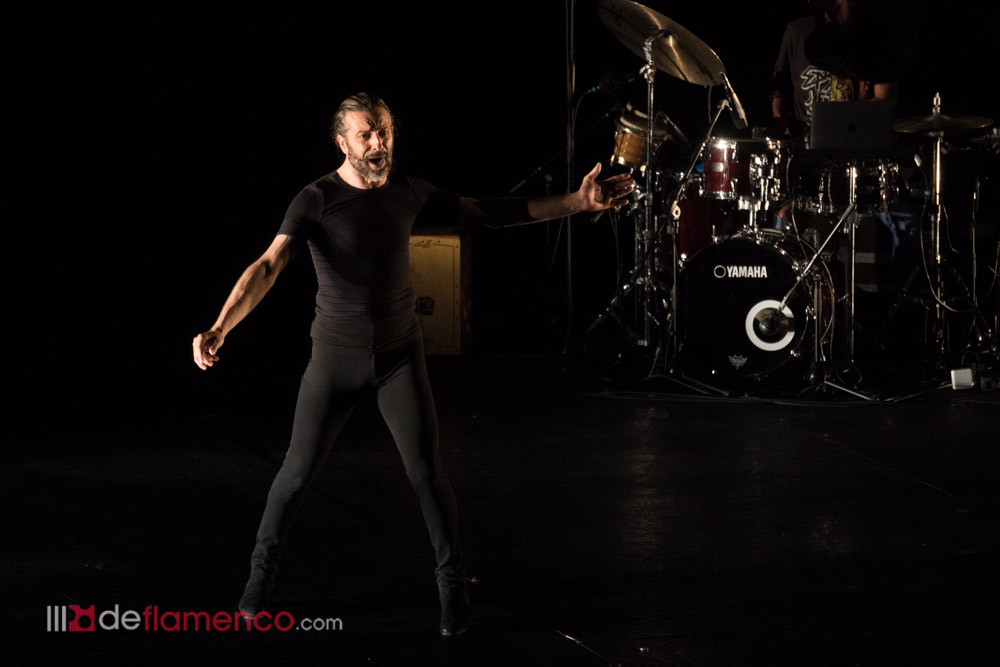 Andrés Marín canta y canta bastante bien. Pero llenar un escenario con su coreografía requiere un esfuerzo que entra en un territorio casi deportivo. Aquí juega un papel fundamental la iluminación del Voluble Benito Jiménez en un sobrio juego de luces y sombras en blanco y negro. Andrés Marín baila contemporáneo y lo que canta es flamenco aunque uno no está seguro que cumpla todas las leyes del compás de los palos que interpreta.