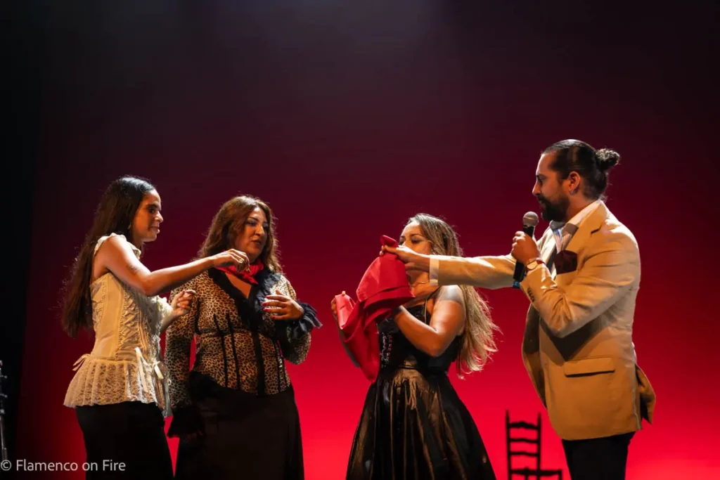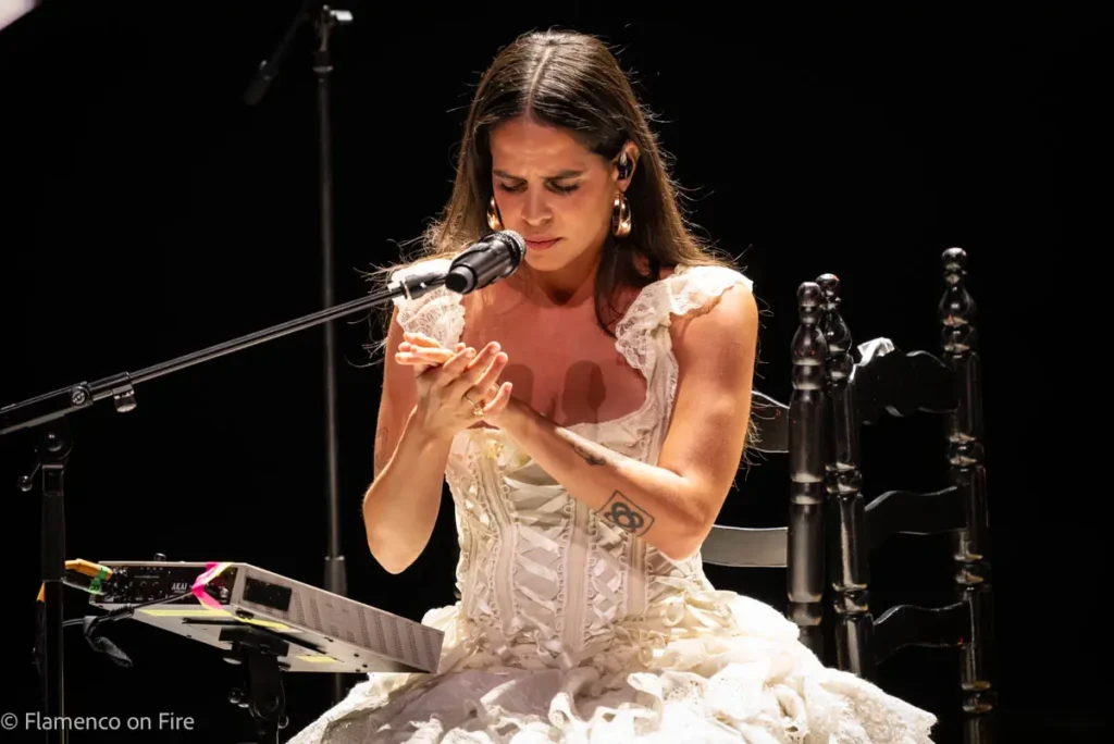 Una hora se tardó en resetear. El presentador pidió disculpas por tener que resumir sus palabras y procedió a presentar a la primera estrella de la noche. Ángeles Toledano que apareció rodeada de neones tal y como la vimos en el Bierzo. Con el sistema de sonido repuesto la Toledano hizo su espectáculo resumido. Hubo que limpiar el escenario para que apareciera Lela Soto y lo mismo para María Terremoto que hizo una puesta en escena modelo Beyoncé, le faltaron los ventiladores. En los tres casos hicieron de tripas corazón, se pueden imaginar la escena en camerinos con el maquillaje puesto, el vestuario planchado y los cantes y las palmas afilados al compás pertinente y sin saber si vas a poder actuar y en qué condiciones.