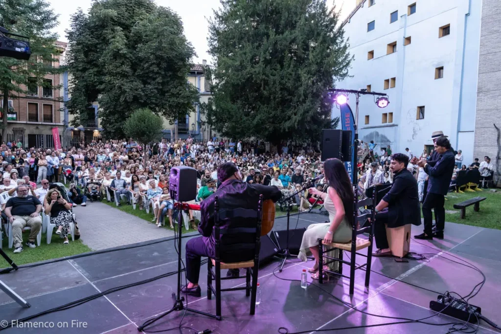 Unas horas antes, por la mañana, tocaba resetear en el bar de la plaza del ayuntamiento. Hace unos años me quedé encerrado sin poder salir durante la actuación ofrecida por Tomatito. Con el mismo protagonista tocando la guitarra desde el balcón del chupinazo, en esta ocasión lo difícil fue poder llegar hasta el bar. Tomate le está cogiendo el gusto a tocar “La leyenda del tiempo” el disco con el que debutó con Camarón, no fue la única referencia al de la Isla de San Fernando. Un ratito después el personal se disputaba las sombras de la Plaza del Castillo en torno al hotel La Perla con Antonio El Turry que defendió su cante ante un ambiente festivo. A destacar la sutileza de su interpretación de una vidalita.