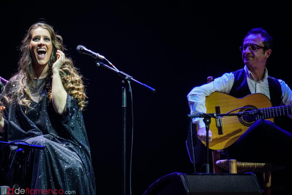 Argentina María López Tristancho (Huelva 1984) comenzó por unas bulerías viajeras y siguió por las guajiras “La vida del artista” que dan título a su último disco. Argentina viste como de otra época quizá eso ayude a identificar su cante por el lado tradicional. El caso es que comentó lo importante que era para ella “cantar en Madrid, ciudad por la que han pasado todos los grandes del flamenco”. Se le olvidó que algunos de esos son de Madrid y contó que había recibido un email de un chico dispuesto a pedirle matrimonio a su novia. Estas cosas que son habituales en los campos de juego en USA pero son infrecuentes en el flamenco y Argentina optó por elegir un tema a propósito. Sonó un ¡gracias! contento y varonil. ¿ha dicho que sí? preguntó la cantaora por si tenía que adelantar la soleá. Y entonó unas alegrías precedidas por un “me voy pa Cádiz” y enseguida le sugirieron que pasara por Huelva.