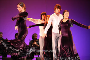 The show leaves no room for resting, and the continuity is only broken by the audio cuts. Violin, guitar and percussion are not visible, which gives the feeling of recorded music in the transitions from one number to another, as if someone were turning a radio off and on. This is the only negative point in an overall good backup, headed by the guitarist responsible for the music, Juan Requena, the electric violin of Bernardo Parrilla, the percussion of Lolo Pájaro and the singing of José Ángel Carmona, Antonio Campos and special guest artist, Guadiana.
