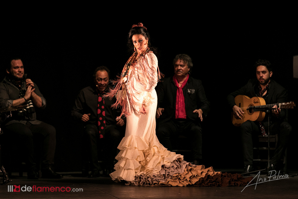 En “Flamenca”, la bailaora demuestra su dominio de la bata de cola, palillos y mantón, además de una formación clásica que ostenta a través de unos movimientos de ballet clásico bien aprendidos, que sabe incorporar al flamenco. Por soleá, taconea con fuerza durante el cante, de modo que apenas se escucha la voz. Por el lado positivo, exhibe abundancia de pellizcos sabrosos y originales, especialmente por bulerías. Hermosa estampa por alegrías con bata de cola blanca, y un estilo angular y recortaíto. Por taranto sigue con su línea agresiva a la vez que femenina, así rematando un programa fuerte que pocos serían capaces de entregar.