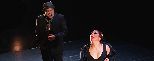 Another moment of the evening was provided by El Pele, a stage-devouring monster. His tonás gave way to Fuensanta's dance of seguiriyas, and they both delighted us with a rapport that was could only be described as total. The Cordoban singer's «reniego» verse is still vibrating the walls of the Cervantes theater. Without a doubt things only got better as the show progressed. Singer Juan Manuel Tirado sang a Camarón version of granaína ending with the rondeña of Gallina and fandango of Frasquito.