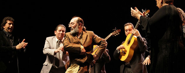 Todo el papel vendido, mucha expectación – los nimeños tienen paladar y saben lo que les gusta. La misma ráfaga de energía flamenca que nos quitó el calor ambiental aquella noche de verano hace cuatro meses en la última Bienal de Sevilla, sopló fuerte en Nimes para calentar la noche helada Un selecto grupo de extraordinarios artistas prácticamente desconocidos (favor de echar un vistazo al elenco que figura arriba) se reunían para hacer lo que llevan haciendo toda la vida, dejándonos observar y sentir la movida resultante. Y Bobote, el que menos hace y más pinta, el compacto hombre que es la fuerza motriz e inspiración de todo. Cuando los flamencos de Triana fueron trasladados al barrio de Las Tres Mil Viviendas, el equipaje más abundante que se llevaron fue el inmaterial: su arte y su cultura.