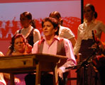 Manuel está de voz fenomenal y así lo demostró en los Corridos y Soleá, también le acompañó José Valencia dejando su sello en los cantes de levante. Anabel Valencia sacó su valentía y descaro por Bulerías y el patriarca Miguel Funi volvió a dar lo que se esperaba de él, ese cante y baile tan personal e inimitable que posee encandilando a todo el público asistente. Sin duda este es un espectáculo auténtico, que busca en la verdad del cante para ofrecerla sin más, que pretende mostrar sentimiento en lugar de técnica y premeditación por sistema, esto es algo básico en el flamenco, pero parece que hace algún tiempo que los propios flamencos se han olvidado de ello. Luego Esperanza Fernández, lebrijana de ascendencia demostró porque está donde está, que no es ni mucho menos fácil. La cantaora es una profesional grandísima y nos dejó con un maravilloso recuerdo de la actuación tanto cuando recreó los tangos de Triana de modo magistral, como en su cante y baile por Bulerías donde sin duda tiene la capacidad de mandar.