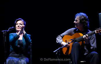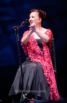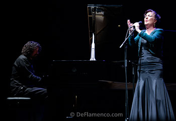 Carmen Linares: cante. Eduardo Pacheco and Salvador Gutiérrez: guitar. Pablo Suárez: piano. Kike Terrón: percussion. Ana González and Rosario Amador: jaleos, chorus and palmas. Javier Barón: dance. TO BE OR NOT TO BE We said it the other day, sometimes flamenco and its interpreters need to be rescued. From themselves. The greatest enemy of art is monotony, drudgery, predictability. Contrived interpretations dressed up as profound and offered as sincere. That can be suffocating, and it fills an artform that claims to be pure and true, with sludge. It’s just kidding ourselves. But I digress… This was one of the three or four major components left of this survival version of the Suma festival. And unlike the others, this was the first time it was presented in Madrid. It wasn’t an out-and-out premiere, because Carmen Linares has been performing Remembranzas over a year now, but it was the presentation to Madrid’s flamenco followers. This is her stomping ground, and this woman tends always to be up to the task at hand. This is a person who is capable of working two or three shows at once, and for this we are grateful. Carmen Linares has the need to offer a certain continuity, it’s part of her character and that gives an added shine to what she does. It’s just a matter of being that way or not. And aside from the novelty, the dedication. Nearly two hours of show, and hour and a half of singing, handily resolved that dilemma of whether to be or not to be. Like I said, it’s her way. But just as happened the previous year, she had a hard time getting started. Or so it seemed. Carmen’s voice doesn’t reach cruising speed until she passes the halfway point of each recital. In tangos, she shared the task of singing nearly as much as her palmas backup person, and in the taranta, cartagenera and soleá por bulería it was clear other resources were carrying her along. The carefully chosen verses, and the excellent phrasing and knowledge of Salvador Gutiérrez’ guitar-playing, ever on the rise. With the appearance of Pablo Suárez, and a wink in three acts to Miguel Hernández, the register toned down, not much voice was required, so in the end, in the toná and debla with Suárez beating out rhythm on a simulated anvil, Carmen Linares showed the temperature was just right. Then came the seldom-heard fandangos de Alosno, “Puñal Dorado”, and the powerful ending with all the force that had been lacking at the beginning. The polyrhythmic “Milonga del Forastero” was far better than the recorded version, a large selection of “women’s” bulerías and the closing of siguiriyas with dance. Because Javier Barón also came to rescue flamenco. A committed dancer who uses his whole body as a single unit. His contribution in the alegrías was important, and this closing was moving. Javier joined Carmen and her people and also opened a credit line in the all too often closed and inward-looking flamenco circuit. But there was a surprise. A tribute to Madrid in the form of a song by Sabina. The most flamenco version possible of “Pongamos que Hablo de Madrid” for a straightforward fiesta ending. And so it went, an artist who can never be accused of being a conformist. Rescuing flamenco is not something that anyone can do. It’s the dilemma of to be or not to be. Video: