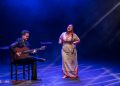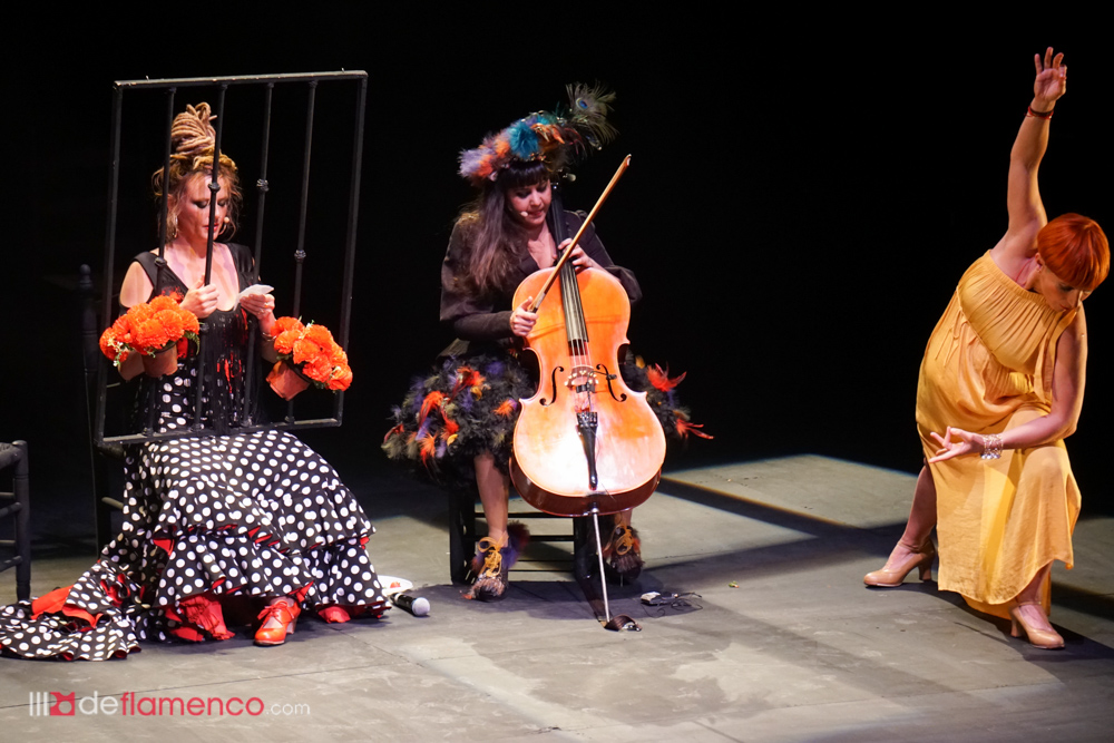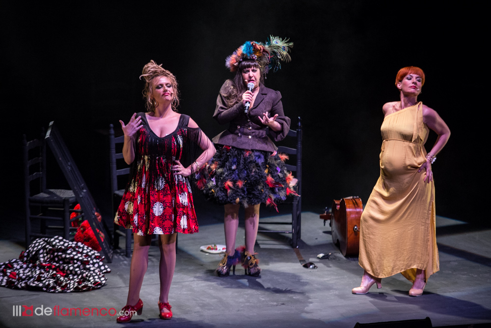 Total que del sonido no hay que hablar excepto cuando falla y volvió a fallar con Maui, en el sketch más desternillante que se recuerda en el flamenco contemporáneo (Pericón y Chano Lobato juegan en la liga de los clásicos). Maui aparece por detrás del público, descalza, vestida con uno de esos trajes de fantasía de corral y llegando tarde al ensayo, en esas aparece Naike Ponce vestida de flamenca, detrás de una reja con sus claveles mientras que la Shica se negaba a enseñar su peinado hiperpop y su barriga de embarazada. Total que ensayan una ¿soleá? con el cello de Maui, el baile de la Shica y Naike leyendo un papelito detrás de los claveles de la reja (que se la trajo de casa, pero esa es otra historia) y están así con el personal desmayado de la risa, cuando hacen el chiste de la temporá. -¿Y qué hacemos? ¿una del Niño de Elche? Maui es muy de comentar las modas modernas y decía en una de sus canciones “vamos a echarle una mano a Pablo Alborán”. Ella es así de generosa y sus comadres también y deciden cantar la de “La Noche Perfecta” una canción pop del disco de Maui para Nuevos Medios y Naike y La Shica hacen lo que siempre hicieron los grandes flamencos, cantar con personalidad propia. A esas alturas Naike se ha quitado el traje de flamenco para lucir el vestido de Senegal de rojo (ilusión pop) que combinaba perfecta con las carcajadas y con una foto en blanco y negro de los Pegamoides. Genial.
